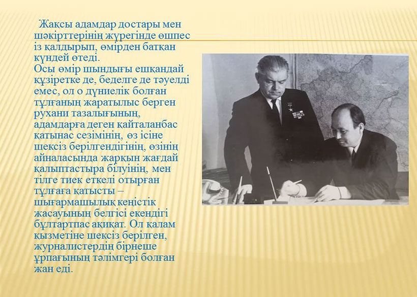 көркем, рухани, қастерлі жерлеріміздің біртұтас желісін бұрын-соңды жасаған емеспіз» деген еді.
