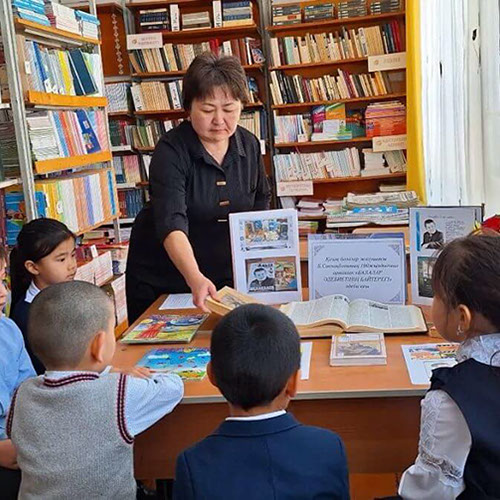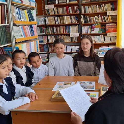 * Кітапхана қабырғаларында ұйымдастырылған тақырыптық көрмелерді қарау;